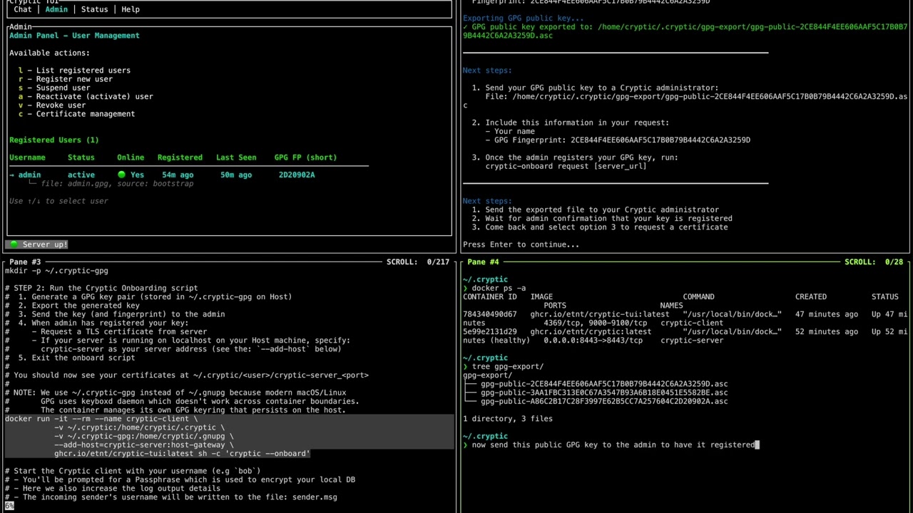 Follow the containerized deployment instructions for a quick way to try out Cryptic.